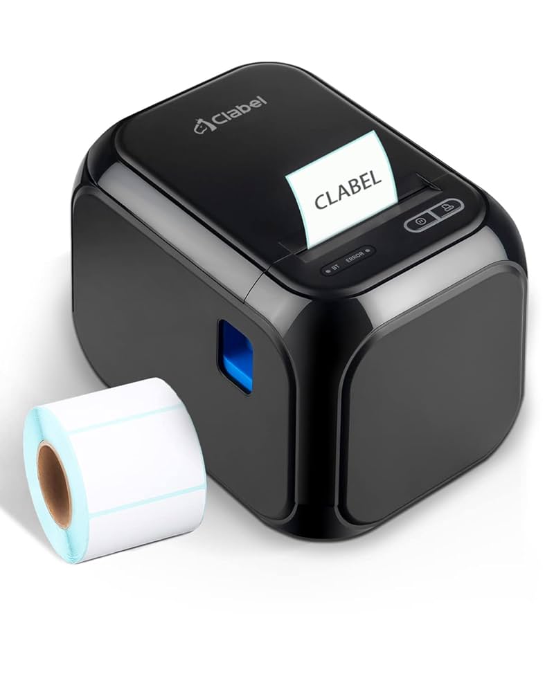 CLABEL 320D Stampante Etichette Termica Bluetooth per Desktop, Etichettatrice Adesiva Compatibile con PC e Smartphone, per Codici a Barre, Prezzi, Ufficio, con 1 Rotolo Etichette.